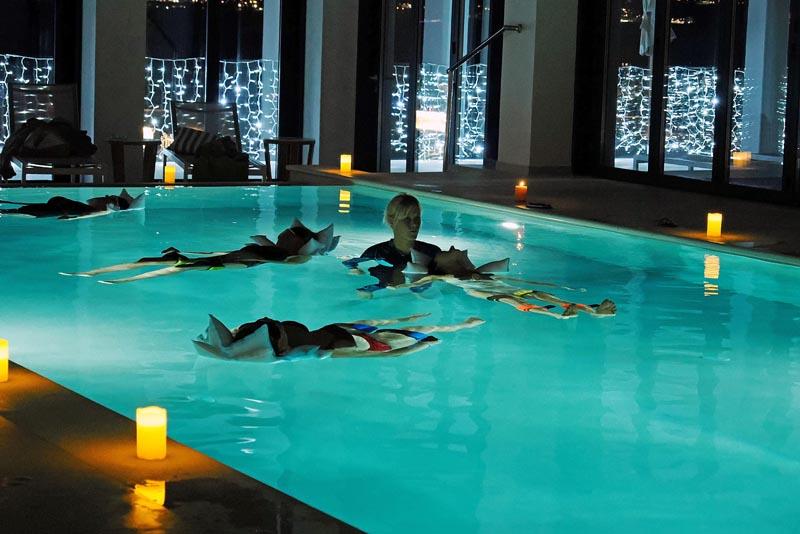 Program se izvodi u grijanom bazenu za individualce ili grupe, a cilj je u toploj vodi bez gravitacije, fluidnim pokretom (spirale, istezanja, rotacije) pomoći tijelu da utone u bestežinsko stanje, da se um prazni, duh oslobađa blokada, mišići opuste, hormoni reguliraju.