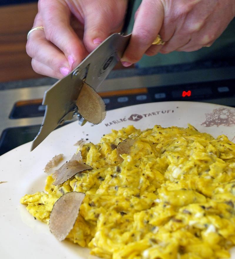 Gospođa Karlić nas je ugostila u novootvorenom restoranu priredivši nam plate s raznim sirevima s tartufom i suhomesnatim proizvodima naravno također od tartufa, kao i kanapeiće s raznim namazima od tartufa, kojega nazivaju „Mozartom među gljivama“.