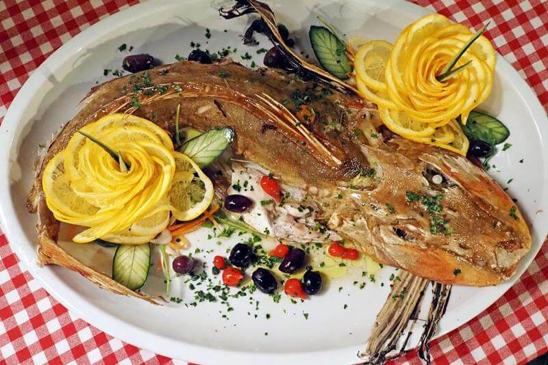 Toplo predjelo su ravioli sa škampima u kremastim umacima, a za glavno jelo stu je gratinirani file orade s bosiljkom poslužnom uz ratatouille od sezonskog povrća.