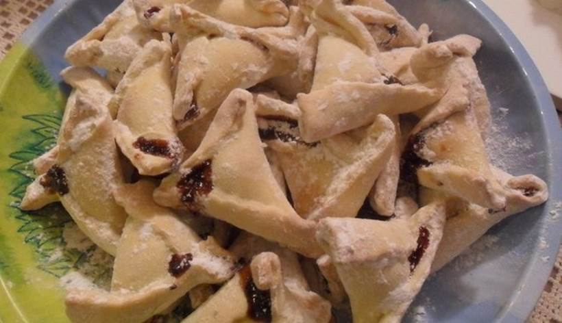 Od navedenih sastojaka umijesite glatko tijesto. Tanko ga razvaljajte, a zatim kotačićem izrezujte pravokutnike veličine otprilike 8×8 centimetara.