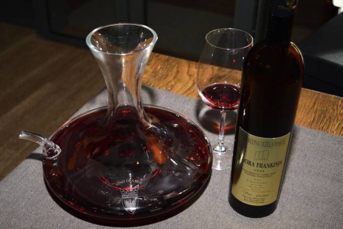 Frankovku je trebalo dekantirati pa je to bila prilika da Janez Šekoranja predstavi dekanter koji je on osobno dizajnirao. Radi se o dekanteru posebnog dizajna koji omogućuje brzo prozračivanje vina te jednostavno i praktično točenje u čaše. No, i nakon svih mogućih priznanja, koje je dobio za svoja vina, a ona se 80 posto izvoze, Šekoranja i dalje uči, jer obvezno pita kako, kome i koje vino odgovara.