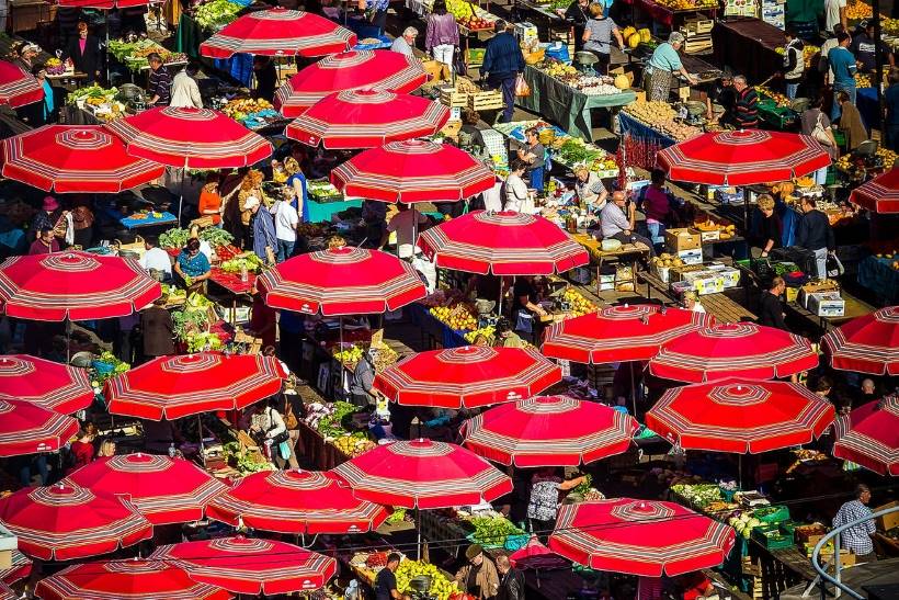 Dolac, il mercato centrale,” il cuore pulsante di Zagabria” e “meta immancabile per annusare il fascino della componente balcanica di Zagabria”: frutta, verdura, pomodori giganti, limoni, colane di fichi secchi, semi di zucca, il pane di granoturco da spalmare con kaymak c’è del tutto….